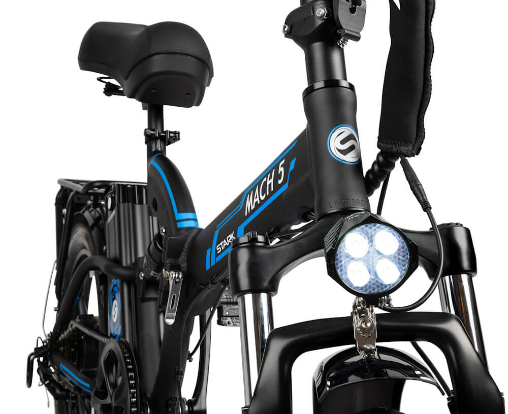 בולם אוויר מרכזי, פנסי LED קדמיים ואחוריים, ושילדת שיכוך מלא עם אפשרות קיפול, רכיבה בטוחה ונוחה מובטחת. עיצוב מסיבי ומרשים – שלדת אלומיניום בצבע שחור